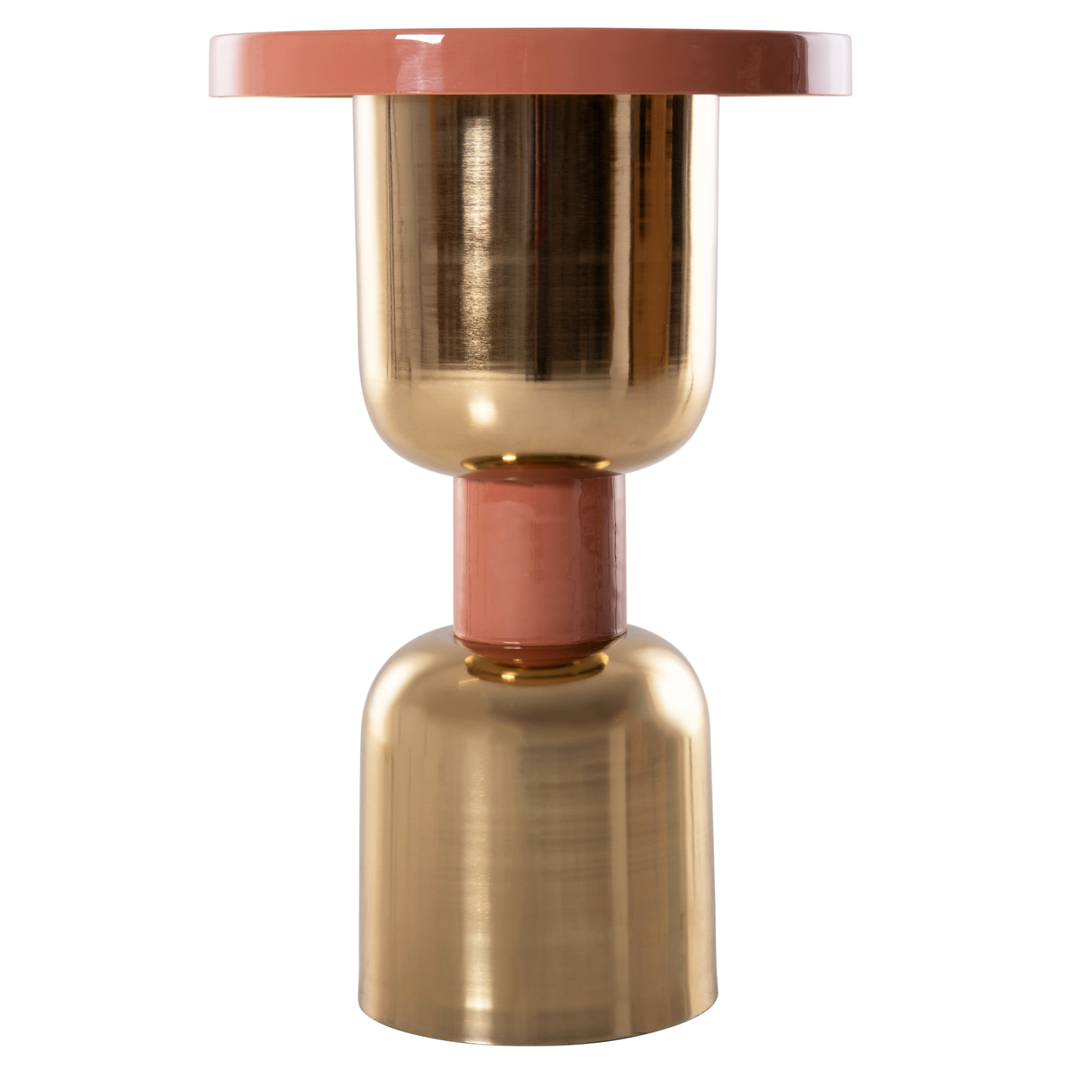 Το βοηθητικό τραπεζάκι SURAT για το σαλόνι είναι μια από τις νέες προσθήκες στην γκάμα μας. Πρόκειται για ένα μεταλλικό τραπεζάκι στρογγυλό με περίτεχνη κυλινδρική βάση και λαιμό. Το τραπέζι είναι σε όμορφη διχρωμία ΣΟΜΟΝ-ΧΡΥΣΟΥ που δίνει μια αίσθηση καθαρότητας στον χώρο. Ιδανικό τόσο για το σπίτι, όσο και για επαγγελματικούς χώρους.
