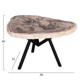 Το τρίποδο τραπεζάκι SAMAN είναι ο ορισμός της ρουστίκ διακόσμησης αλλά με μια έξτρα πινελιά ιδιαίτερου στυλ. Η επιφάνεια είναι πέτρινη με όψη απολιθωμένου ξύλου! Η μεταλλική μαύρη βάση με τρία πόδια ολοκληρώνει αυτή την πολύ απλή και πρακτική υλοποίηση.