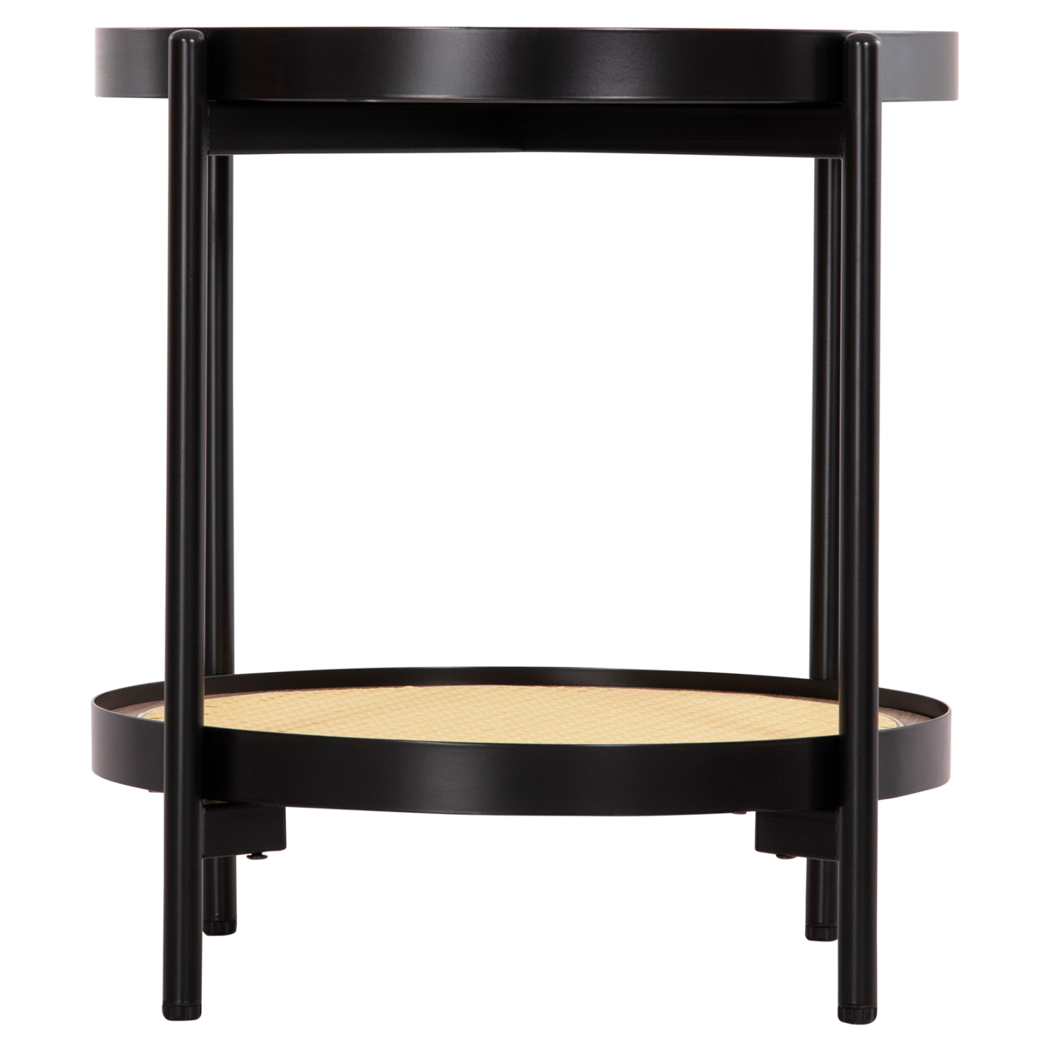 Το SEITZ είναι ένα όμορφο και σχετικά ψηλό στρογγυλό βοηθητικό τραπεζάκι. Το χαρακτηριστικό του είναι ότι διαθέτει 2 επιφάνειες οι οποίες στηρίζονται σε ΜΑΥΡΕΣ μεταλλικές χιαστί βάσεις. Η επάνω επιφάνεια είναι γυάλινη (γυαλί ασφαλείας) σε ΜΑΥΡΟ χρώμα, ενώ η κάτω επιφάνεια είναι κατασκευασμένη από Rattan σε πλέξη wicker σε ΦΥΣΙΚΟ χρώμα. Ένα μοναδικό τραπέζι που συνδυάζει πρακτικότητα και πολυτέλεια για τον χώρο σας.