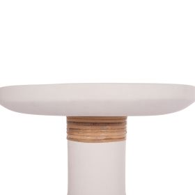 Το βοηθητικό τραπέζι σαλονιού TRED(Τ) είναι ψηλό και στρογγυλό με minimal διακόσμηση/επένδυση στον μακρύ «λαιμό» από φυσικό Rattan. Είναι κατασκευασμένο εξολοκλήρου από Fiber Cement σε ΛΕΥΚΟ χρώμα και αποτελεί ιδανικό συμπλήρωμα τόσο για το σπίτι, όσο και για επαγγελματικούς χώρους, όπως ξενοδοχεία, AirBnB, κτλ.