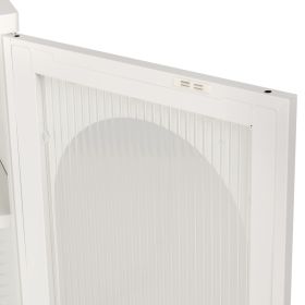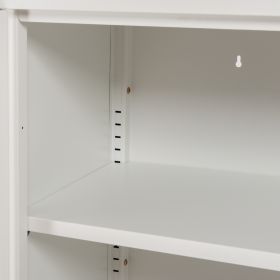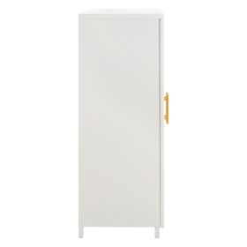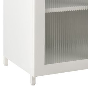 Το CARIL είναι ένα πρακτικότατο μεσαίου ύψους μεταλλικό ντουλάπι-βιτρίνα που έχει φτιαχτεί με γνώμονα την χωρητικότητα για το μέγεθός της και την ανθεκτικότητα. Έχει δύο πόρτες με γυάλινο ραβδωτό τζάμι (βιτρίνα) και με χρυσά χερούλια ενώ το εσωτερικό είναι ένας χώρος με 2 ράφια που δημιουργούν 3 μεγάλους αποθηκευτικούς χώρους. Το χρώμα του ντουλαπιού είναι ΛΕΥΚΟ. Τα πόδια είναι χαμηλά και διαθέτουν ρεγουλατόρους ύψους για μεγαλύτερη ευελιξία στον χώρο που θέλετε να τοποθετήσετε το ντουλάπι.