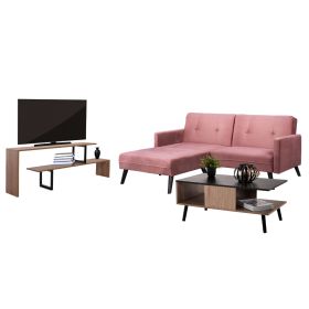 Αυτό το σετ περιλαμβάνει γωνιακό καναπέ-κρεβάτι, έπιπλο τηλεόρασης, και τραπέζι σαλονιού! Αναλυτικά: