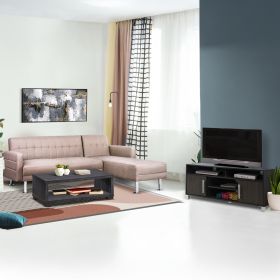 Αυτό το σετ περιλαμβάνει έναν γωνιακό πολυμορφικό καναπέ-κρεβάτι, ένα έπιπλο τηλεόρασης, και ένα τραπέζι σαλονιού! Αναλυτικά: