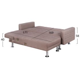 3-θέσιος γωνιακός, αναστρέψιμος, και πολυμορφικός καναπές-κρεβάτι--ΜΠΕΖ ύφασμα—ψηλά μεταλλικά πόδια.