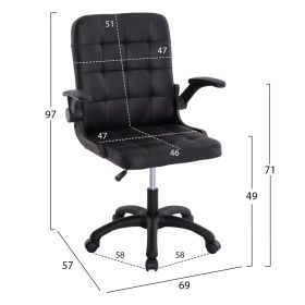 Καρέκλα γραφείου με ΜΑΥΡΟ με συνθετικό δέρμα PVC και μπράτσα που ανεβοκατεβαίνουν (flip-up).