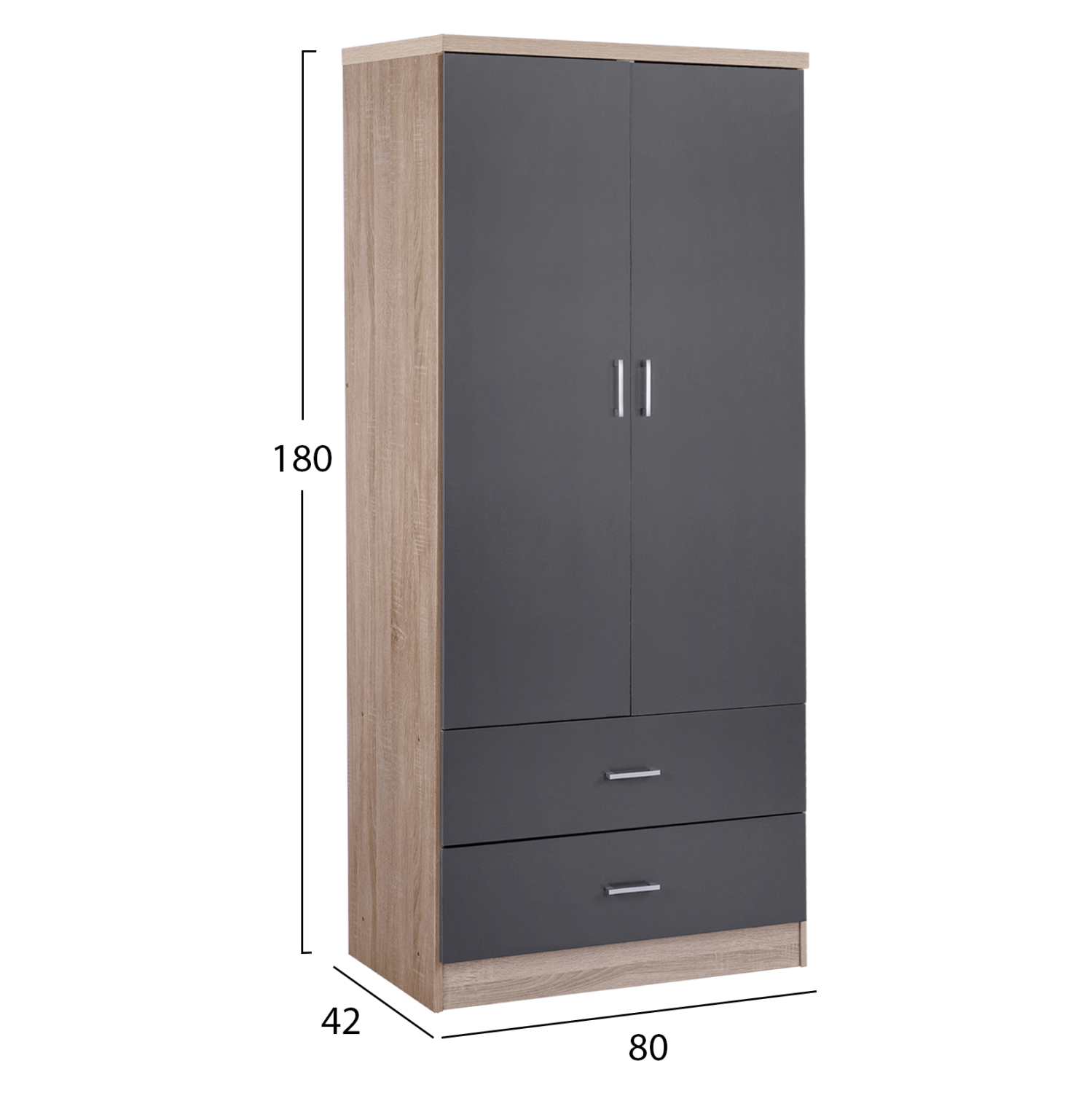 2φυλλη ντουλάπα μελαμίνης με δύο συρτάρια σε sonama-γκρι.
