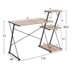 Γραφείο με μαύρο μεταλλικό σκελετό και επιφάνειες mdf σε ΟΑΚ χρώμα.