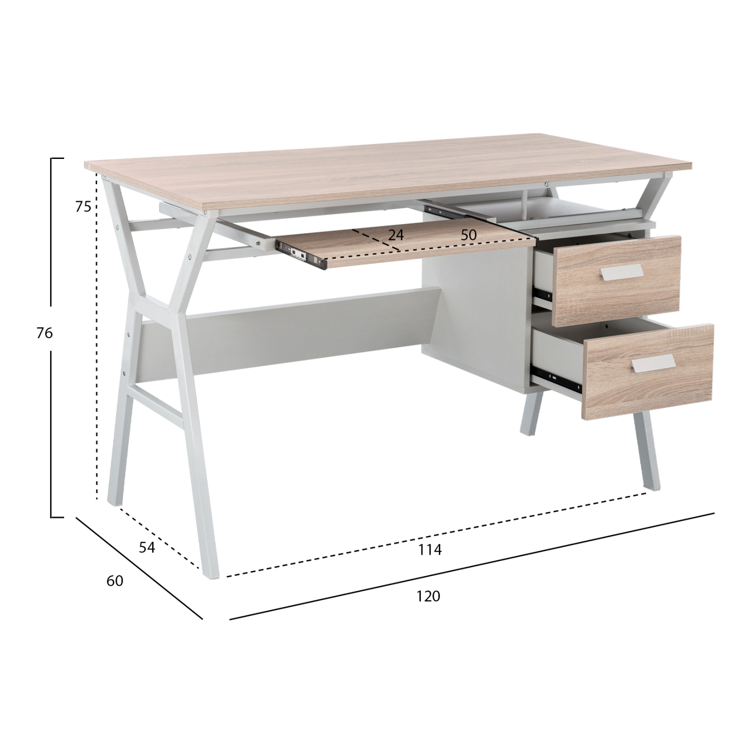 Γραφείο από μελαμίνη και μέταλλο σε sonama και λευκό χρώμα. Διαστάσεις: 120x60x76Υ εκ.
