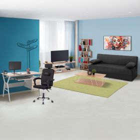 Καρέκλα γραφείου με προσκέφαλο, με ύφασμα mesh σε μαύρο χρώμα.
