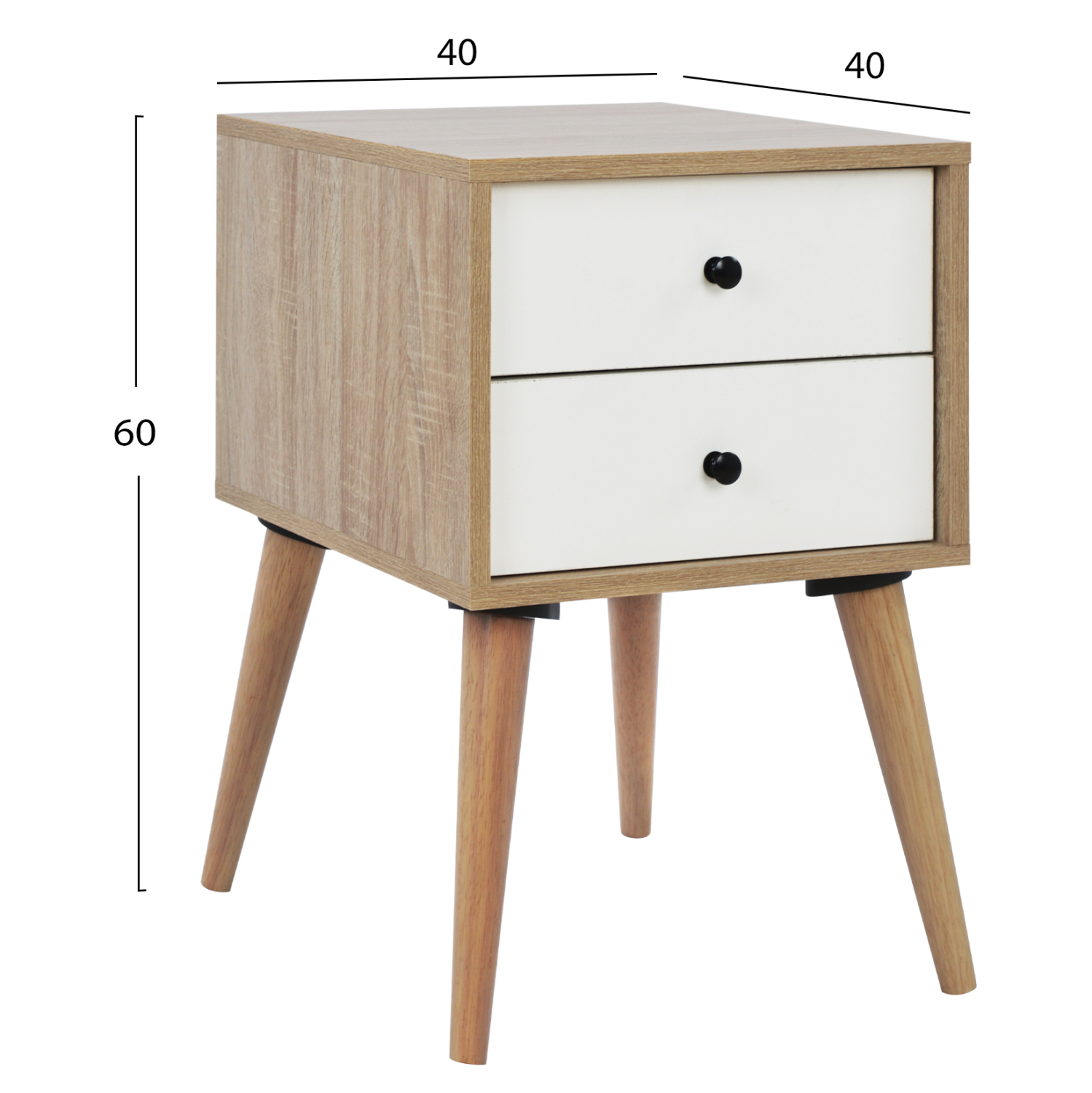 Κομοδίνο μελαμίνης με 2 συρταράκια σε sonama και λευκό. Διαστάσεις: 40x40x60Υ εκ.