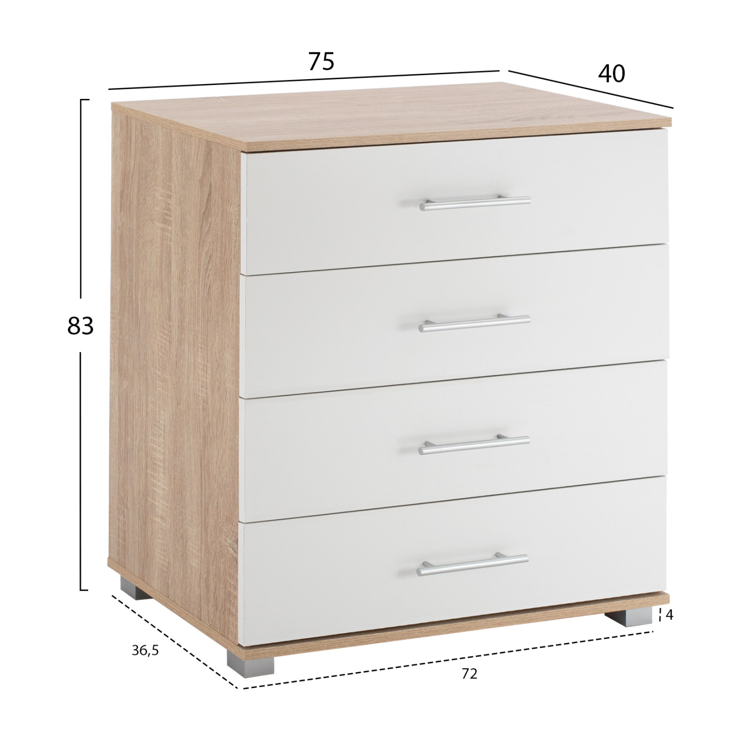 Συρταριέρα με 4 συρτάρια από μελαμίνη σε sonama και λευκό χρώμα. Διαστάσεις: 75x40x83Υ εκ.