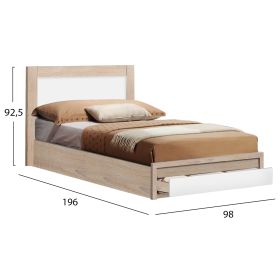 Κρεβάτι μονό μελαμίνης με συρτάρι σε sonama και λευκό. Διαστάσεις: 190x90 εκ.