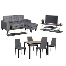 Αυτό το σετ περιλαμβάνει καναπέ γωνία, έπιπλο τηλεόρασης, τραπεζάκι σαλονιού, κι ένα σετ τραπεζαρίας με τραπέζι και 4 καρέκλες!