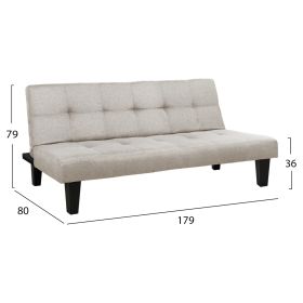 - Πτυσσόμενος τριθέσιος καναπές-κρεβάτι χωρίς μπράτσα, από ύφασμα σε μπεζ απόχρωση.