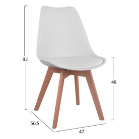HM0033.01 - Τέσσερεις καρέκλες κουζίνας σε συνδυασμό ξύλου-πολυπροπυλενίου-τεχνοδέρματος σε λευκή και φυσική απόχρωση.