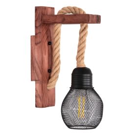 Η απλίκα τοίχου BARN2 είναι μια εντελώς λιτή πρόταση σε στυλ ρουστίκ farmhouse, με ξύλινη βάση και σχοινί κάνναβης από το οποίο κρέμεται το καπέλο σε στυλ μεταλλικού πλέγματος.