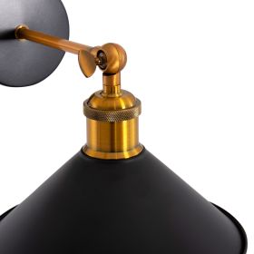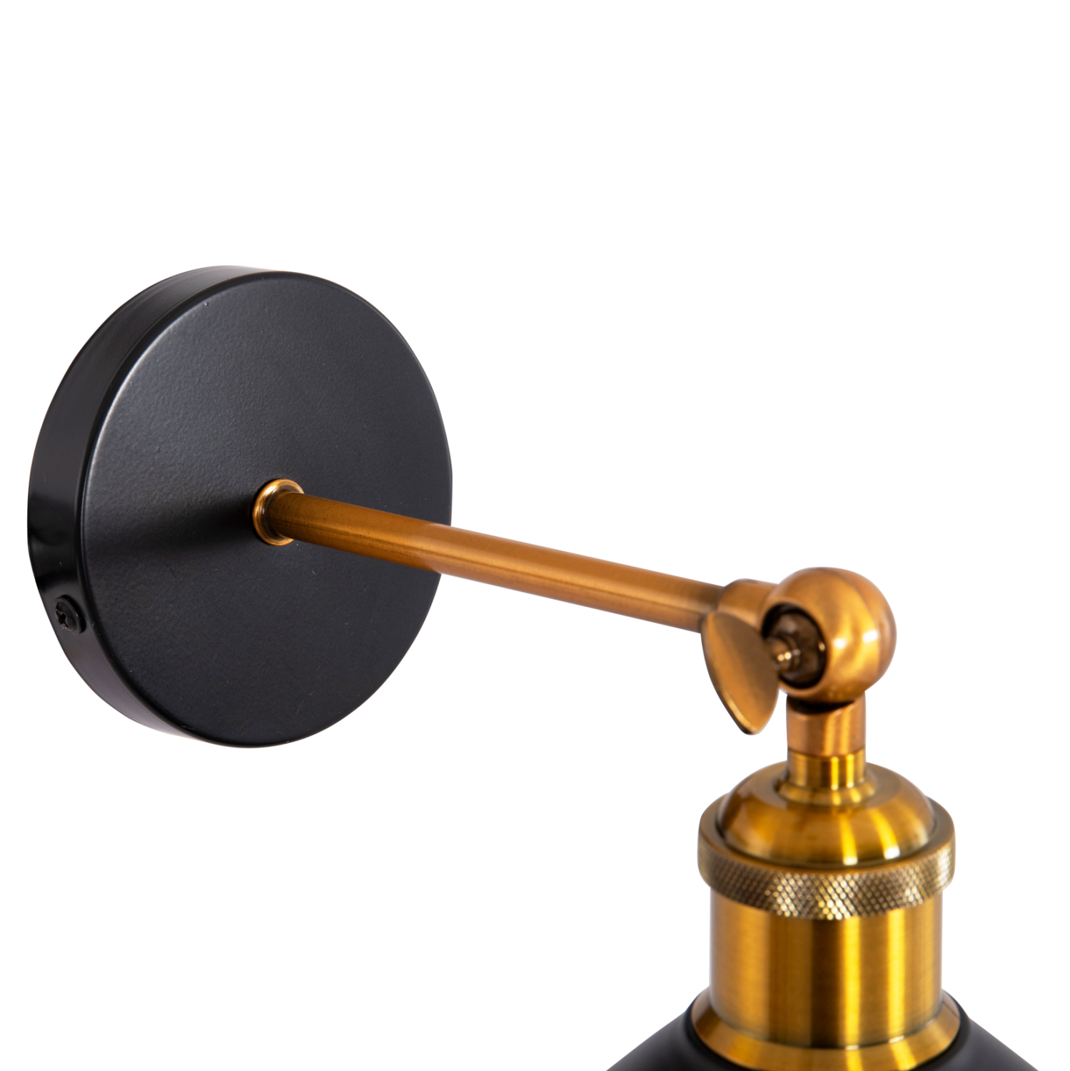 Η απλίκα τοίχου RESTON2 είναι μια όμορφη πρόταση σε industrial στυλ, με ΜΑΥΡΗ μεταλλική βάση και καπέλο, και ΧΡΥΣΟ βραχίονα, με επίσης ΧΡΥΣΟ ντουί από αλουμίνιο. Ο βραχίονας είναι ρυθμιζόμενος με περιστροφική «πεταλούδα» (βίδα).