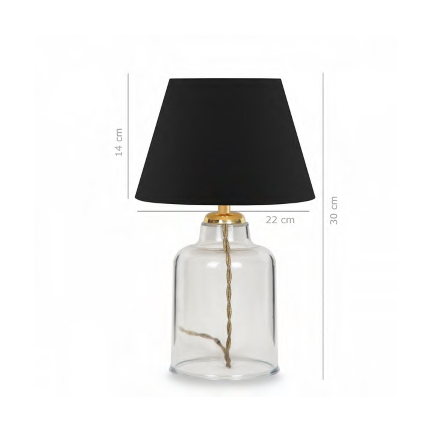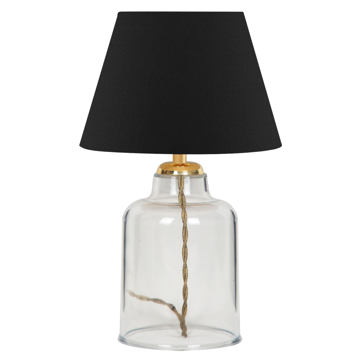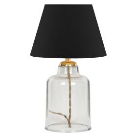 Φωτίστε τον χώρο που επιθυμείτε με το ευέλικτο επιτραπέζιο φωτιστικό με διαφανή πλαστικό κορμό. Ένας ειδυλλιακός συνδυασμός casual γοητείας και στιλβωμένου σχεδιασμού προσδίδει μια διαχρονικότητα που δεν θα γεράσει. Ο διαφανής κορμός κρατά αυτό το επιτραπέζιο φωτιστικό ελαφρύ και ευάερο. Η βάση και το «καπέλο» σε σχήμα ανοιχτής καμπάνας σε μαύρο χρώμα συνδυάζονται για να δώσουν σε αυτή τη λάμπα την τέλεια υφή και χαρακτήρα αγροικίας. Η χρυσή κολώνα που αρχίζει να φαίνεται στην κορυφή του κορμού με το χρυσής απόχρωσης καλώδιο, δημιουργούν έναν όμορφο συνδυασμό, ενώνοντας ολόκληρη την εμφάνιση και προσθέτοντας στην απλή κομψότητα της λάμπας.