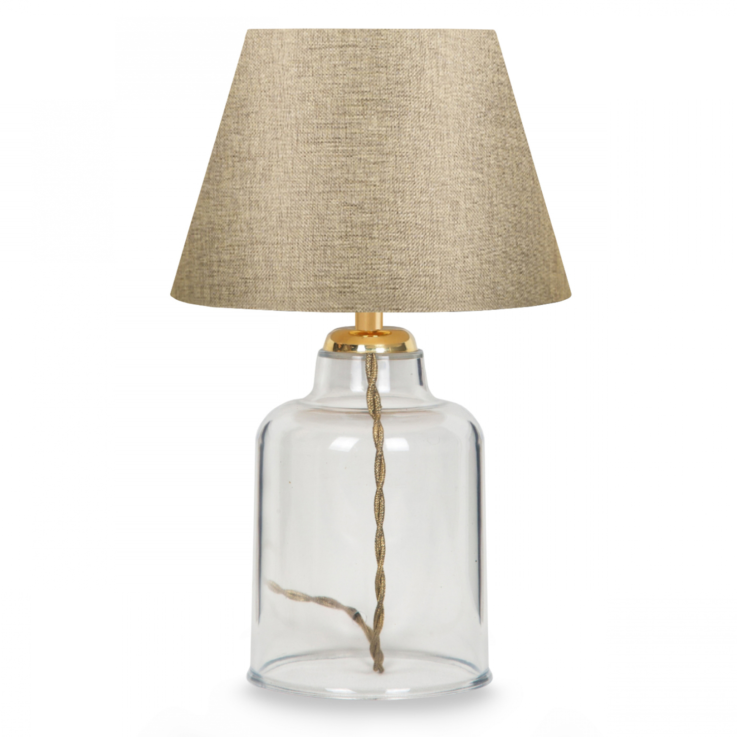 Φωτίστε τον χώρο που επιθυμείτε με το ευέλικτο επιτραπέζιο φωτιστικό με διαφανή πλαστικό κορμό. Ένας ειδυλλιακός συνδυασμός casual γοητείας και στιλβωμένου σχεδιασμού προσδίδει μια διαχρονικότητα που δεν θα γεράσει. Ο διαφανής κορμός κρατά αυτό το επιτραπέζιο φωτιστικό ελαφρύ και ευάερο. Η βάση και το «καπέλο» σε σχήμα ανοιχτής καμπάνας σε χρυσό χρώμα συνδυάζονται για να δώσουν σε αυτή τη λάμπα την τέλεια υφή και χαρακτήρα αγροικίας. Η χρυσή κολώνα που αρχίζει να φαίνεται στην κορυφή του κορμού με το χρυσής απόχρωσης καλώδιο, δημιουργούν έναν όμορφο συνδυασμό, ενώνοντας ολόκληρη την εμφάνιση και προσθέτοντας στην απλή κομψότητα της λάμπας.