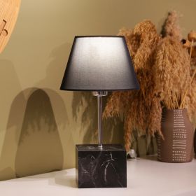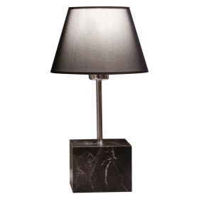 Επιτραπέζιο διακοσμητικό φωτιστικό με μονή κολώνα. Η βάση του φωτιστικού έχει το σχήμα κύβου με όψη ανθρακί μαρμάρου ενώ η κολώνα είναι σε χρυσό χρώμα. Το «καπέλο» έχει τραπεζοειδές κυκλικό σχήμα σε μαύρο χρώμα. Το φως διαχέεται στον χώρο ευχάριστα και η αντανάκλασή του πάνω στην χρυσή κολωνίτσα του φωτιστικού αλλά και στην κυβική βάση, παιχνιδίζει ευχάριστα στο μάτι. Αυτού του είδους τα φωτιστικά δεν προορίζονται για φωτιστικά διαβάσματος και αυτό πρέπει πάντα να λαμβάνεται υπόψη κατά την επιλογή τους. Είναι καθαρά διακοσμητικά και το ταίριασμά τους με τον περιβάλλοντα χώρο θα πρέπει να είναι αρμονικό. Αυτό το φωτιστικό είναι κομψό και βολικό σε διαστάσεις παρέχοντας αμέτρητες δυνατότητες «δεσίματος» με την υπόλοιπη διακόσμησή σας. Είναι ένα μικρό έργο τέχνης.