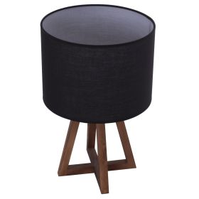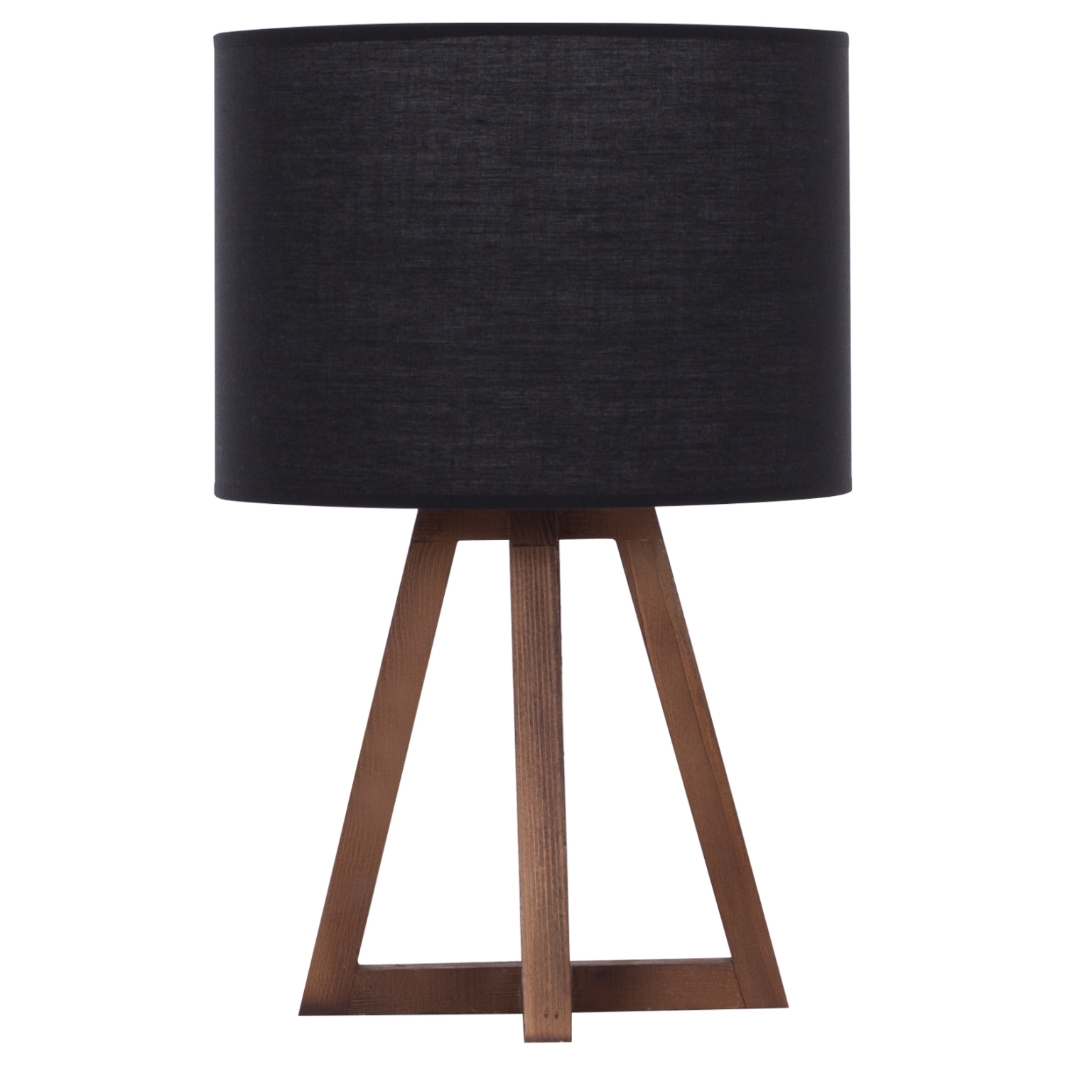 Επιτραπέζιο διακοσμητικό φωτιστικό με ξύλινη βάση σε σχήμα πυραμίδας σε καρυδί χρώμα και «καπέλο» κυλινδρικό σε μαύρο χρώμα. Το «καπέλο» είναι φτιαγμένο από ύφασμα που αφήνει το φως του φωτιστικού να διαχέεται γλυκά στον χώρο και να δημιουργεί μια ζεστή ατμόσφαιρα. Αυτού του είδους τα φωτιστικά δεν προορίζονται για φωτιστικά διαβάσματος και αυτό πρέπει πάντα να λαμβάνεται υπόψη κατά την επιλογή τους. Είναι καθαρά διακοσμητικά και το ταίριασμά τους με τον περιβάλλοντα χώρο θα πρέπει να είναι αρμονικό. Αυτό το φωτιστικό είναι λιτό, κομψό και βολικό σε διαστάσεις παρέχοντας αμέτρητες δυνατότητες «δεσίματος» με την υπόλοιπη διακόσμησή σας. Είναι ένα μικρό έργο τέχνης.