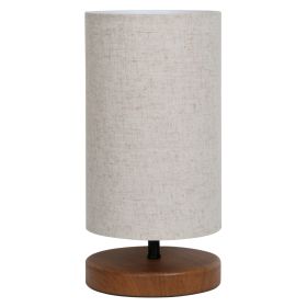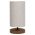 Επιτραπέζιο διακοσμητικό φωτιστικό με ξύλινη κυκλική βάση σε καφέ χρώμα και «καπέλο» κυλινδρικό σε χρώμα εκρου. Το «καπέλο» είναι φτιαγμένο από ύφασμα τεχνοτροπίας wicker με αποτέλεσμα το φως του φωτιστικού να διαχέεται γλυκά στον χώρο και να δημιουργεί μια ζεστή ατμόσφαιρα. Αυτού του είδους τα φωτιστικά δεν προορίζονται για φωτιστικά διαβάσματος και αυτό πρέπει πάντα να λαμβάνεται υπόψη κατά την επιλογή τους. Είναι καθαρά διακοσμητικά και το ταίριασμά τους με τον περιβάλλοντα χώρο θα πρέπει να είναι αρμονικό. Αυτό το φωτιστικό είναι λιτό, κομψό και βολικό σε διαστάσεις παρέχοντας αμέτρητες δυνατότητες «δεσίματος» με την υπόλοιπη διακόσμησή σας. Είναι ένα μικρό έργο τέχνης.