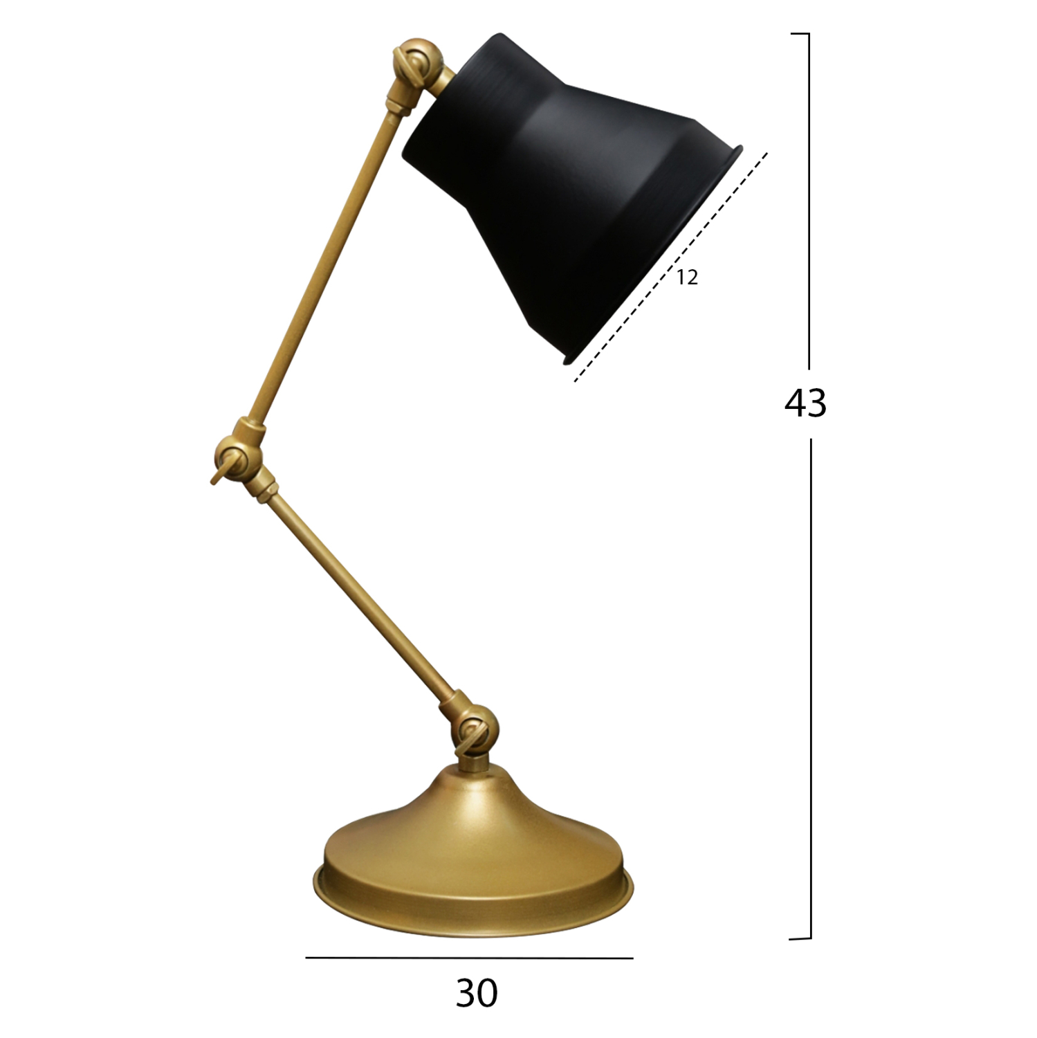 Μια ανανεωμένη εμφάνιση σε ένα διαχρονικό και παραδοσιακό κομμάτι που στυλιστικά δεν θα γεράσει ποτέ. Αυτό το ρυθμιζόμενο σε τρία σημεία κομψό φωτιστικό γραφείου διαθέτει κυκλική βάση ελαφρώς υπερυψωμένη στο κέντρο της και βραχίονες, από μέταλλο σε χρώμα παλαιωμένου χρυσού. Το «καπελάκι» είναι επίσης μεταλλικό και μαύρο. Το τελικό αποτέλεσμα αν και κλασικό, σου αφήνει μια μοντέρνα αίσθηση.