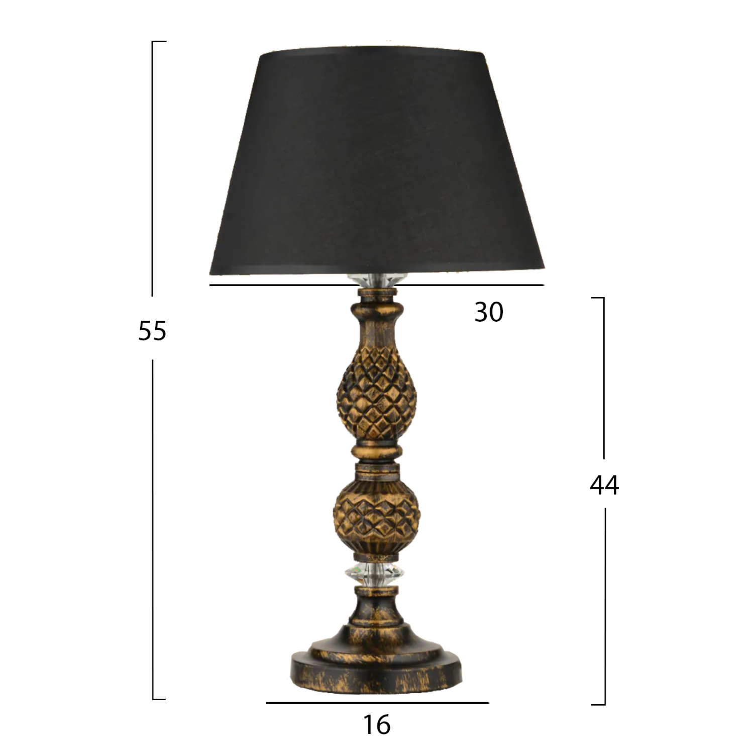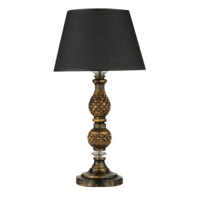 Το ΗΜ7665.02 είναι ένα ιδιαίτερο επιτραπέζιο διακοσμητικό φωτιστικό. Το «καπέλο» του φωτιστικού έχει σχήμα ανοιχτής καμπάνας (τραπεζοειδές) σε ΜΑΥΡΟ χρώμα, ενώ η κολώνα στήριξης είναι το σημείο αναφοράς αυτού του φωτιστικού. Είναι σκαλιστή σε χρώμα χρυσής πατίνας με όμορφο ανάγλυφο σχέδιο και καταλήγει σε μια κυκλική βάση σχετικά μικρής διάστασης. Ένα ξεχωριστό και κομψό επιτραπέζιο φωτιστικό που διαχέει γλυκά το φως και δημιουργεί την ατμόσφαιρα που πάντα φανταζόσασταν για τον χώρο σας, έτσι ώστε να φτιάξετε την δική σας γωνιά χαλάρωσης ή ακόμα και διακόσμησης. Διότι το φως, σημαίνει κάτι περισσότερο από ένα φωτιστικό. Σημαίνει διακόσμηση, ατμόσφαιρα, τέχνη, μεράκι, και φυσικά επιστήμη.