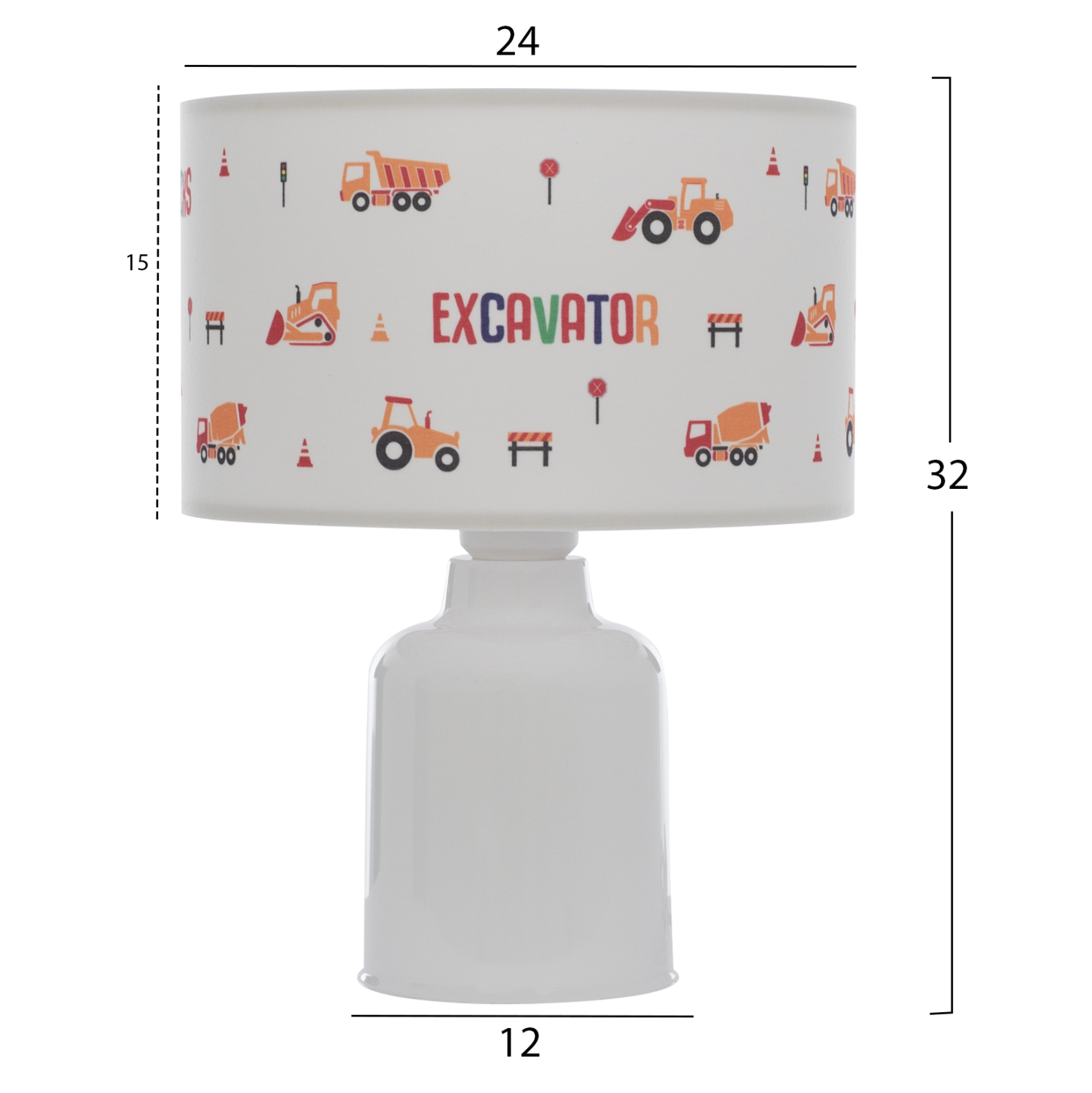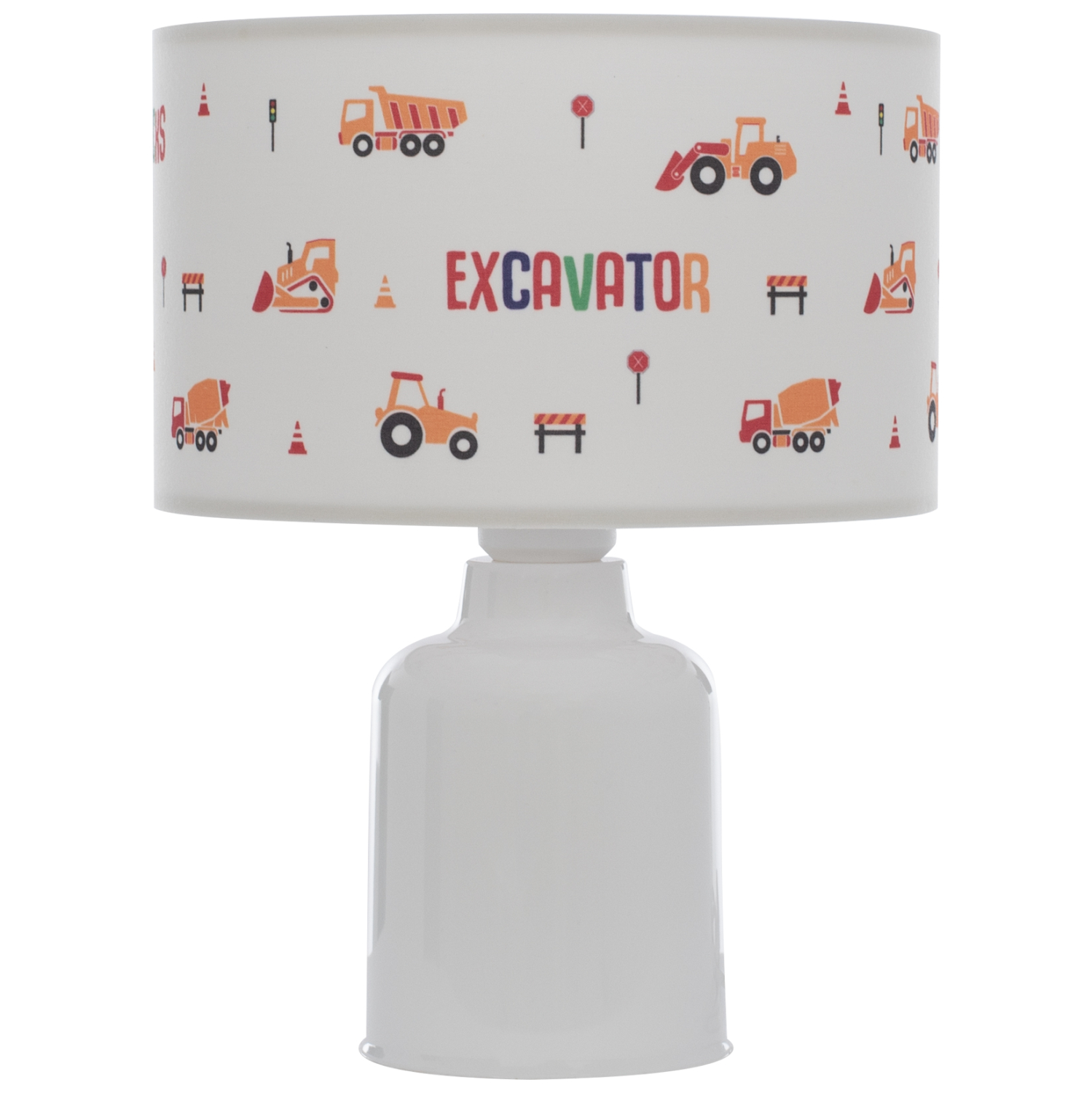 Φωτίστε το παιδικό δωμάτιο του σπιτιού με το ευέλικτο επιτραπέζιο φωτιστικό BALOO με τον λευκό πλαστικό κορμό και το κυλινδρικό «καπέλο» με φιγούρες διάφορων μηχανημάτων, όπως φαγάνες και εκσκαφείς, που πάντα εξάπτουν την φαντασία των παιδιών. Ο απαλός φωτισμός που προσφέρει θα γίνει ο καλύτερος σύντροφος των παιδιών τις νυχτερινές ώρες.