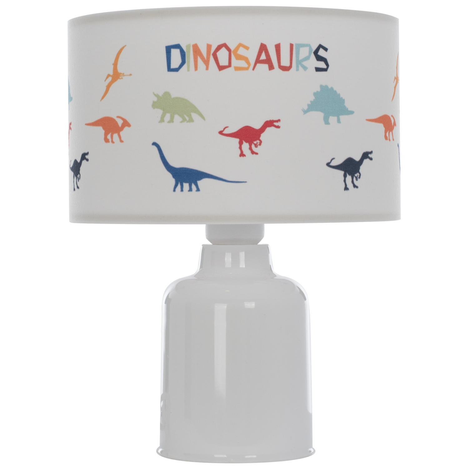 Φωτίστε το παιδικό δωμάτιο του σπιτιού με το ευέλικτο επιτραπέζιο φωτιστικό BALOO με τον λευκό πλαστικό κορμό και το κυλινδρικό «καπέλο» με πολύχρωμες φιγούρες δεινοσαύρων, που πάντα εξάπτουν την φαντασία των παιδιών. Ο απαλός φωτισμός που προσφέρει θα γίνει ο καλύτερος σύντροφος των παιδιών τις νυχτερινές ώρες.