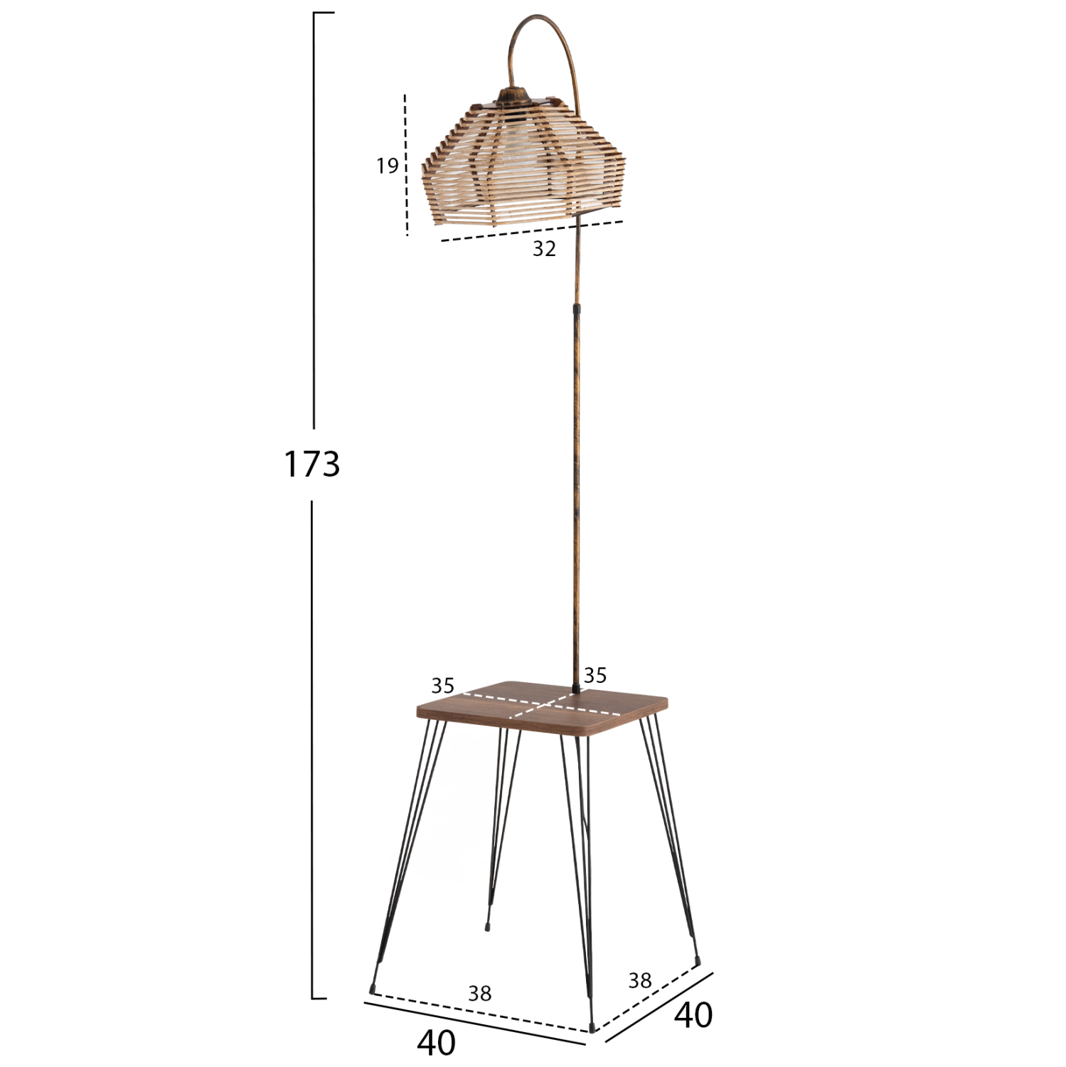 Το ΗΜ7949.01 είναι φωτιστικό δαπέδου με μια ιδιαιτερότητα! Αποτελείται από ένα όμορφο τετράγωνο τραπεζάκι με επιφάνεια μελαμίνης σε ΚΑΡΥΔΙ χρώμα και μαύρα μεταλλικά πόδια, επάνω στο οποίο είναι μονταρισμένη η μεταλλική κολώνα του φωτιστικού. Αυτή η κολώνα καταλήγει με ένα όμορφο σχέδιο στο καπέλο, το οποίο έχει ξύλινο σκελετό επενδυμένο με ειδικά επεξεργασμένο σκληρό κυλινδρικό χαρτί σε ΜΠΕΖ χρώμα. Ένα όμορφο φωτιστικό δαπέδου που θα δημιουργήσει την ατμόσφαιρα που πάντα φανταζόσασταν για τον χώρο σας, έτσι ώστε να φτιάξετε την δική σας γωνιά χαλάρωσης ή ακόμα και διακόσμησης. Διότι το φως, σημαίνει κάτι περισσότερο από ένα φωτιστικό. Σημαίνει διακόσμηση, ατμόσφαιρα, τέχνη, μεράκι, και φυσικά επιστήμη.