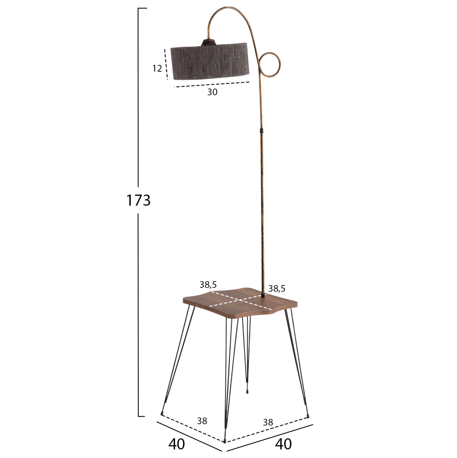 Το ΗΜ7949.02 είναι φωτιστικό δαπέδου με μια ιδιαιτερότητα! Αποτελείται από ένα όμορφο τετράγωνο τραπεζάκι με επιφάνεια μελαμίνης σε ΚΑΡΥΔΙ χρώμα και μαύρα μεταλλικά πόδια, επάνω στο οποίο είναι μονταρισμένη η μεταλλική κολώνα του φωτιστικού. Αυτή η κολώνα καταλήγει με ένα όμορφο σχέδιο στο κυλινδρικό καπέλο, το οποίο έχει μεταλλικό σκελετό επενδυμένο με ειδικά επεξεργασμένο σκληρό κυλινδρικό χαρτί σε ΓΚΡΙ χρώμα. Ένα όμορφο φωτιστικό δαπέδου που θα δημιουργήσει την ατμόσφαιρα που πάντα φανταζόσασταν για τον χώρο σας, έτσι ώστε να φτιάξετε την δική σας γωνιά χαλάρωσης ή ακόμα και διακόσμησης. Διότι το φως, σημαίνει κάτι περισσότερο από ένα φωτιστικό. Σημαίνει διακόσμηση, ατμόσφαιρα, τέχνη, μεράκι, και φυσικά επιστήμη.