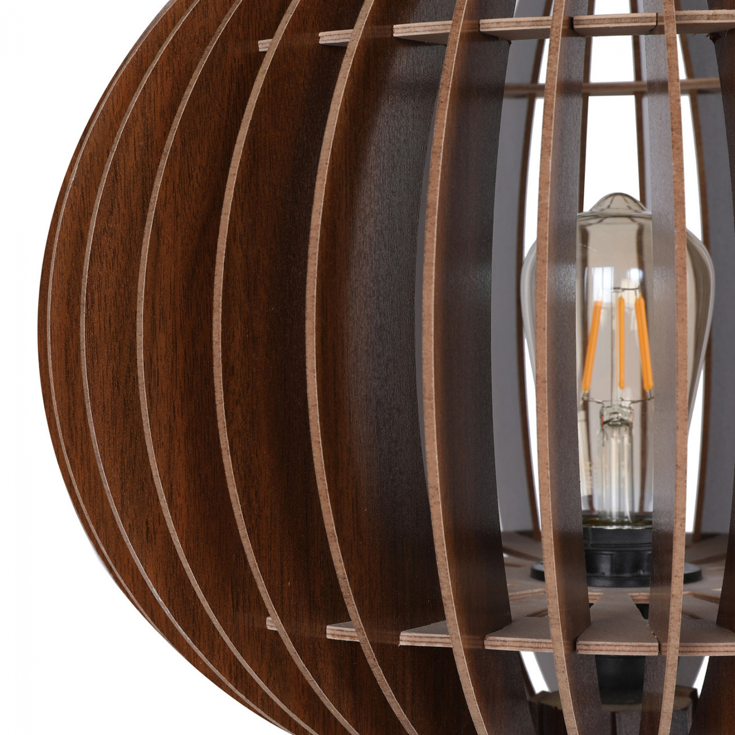 Το φωτιστικό είναι κατασκευασμένο από ενισχυμένο MDF, με μεγάλη αντοχή στην φθορά και το χρόνο, σε καρυδί απόχρωση.