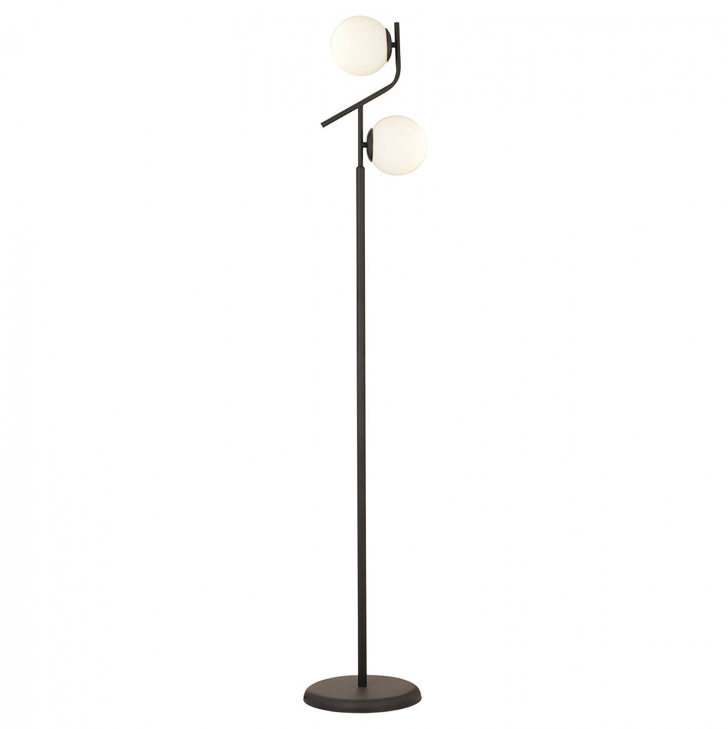 Φωτιστικό δαπέδου, δίφωτο, σε μαύρη απόχρωση με λευκό γυαλί.