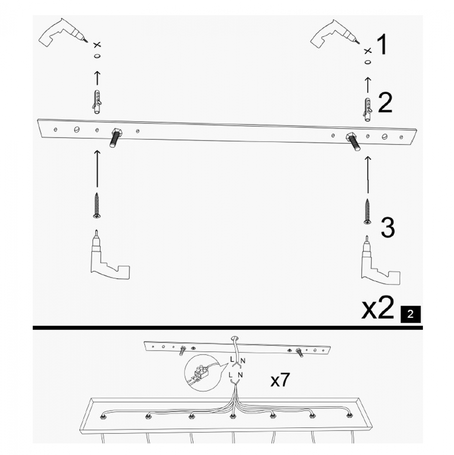 Δέχεται 7 λαμπτήρες E27 έως 100W οι οποίοι δεν περιλαμβάνοται στη συσκευασία.