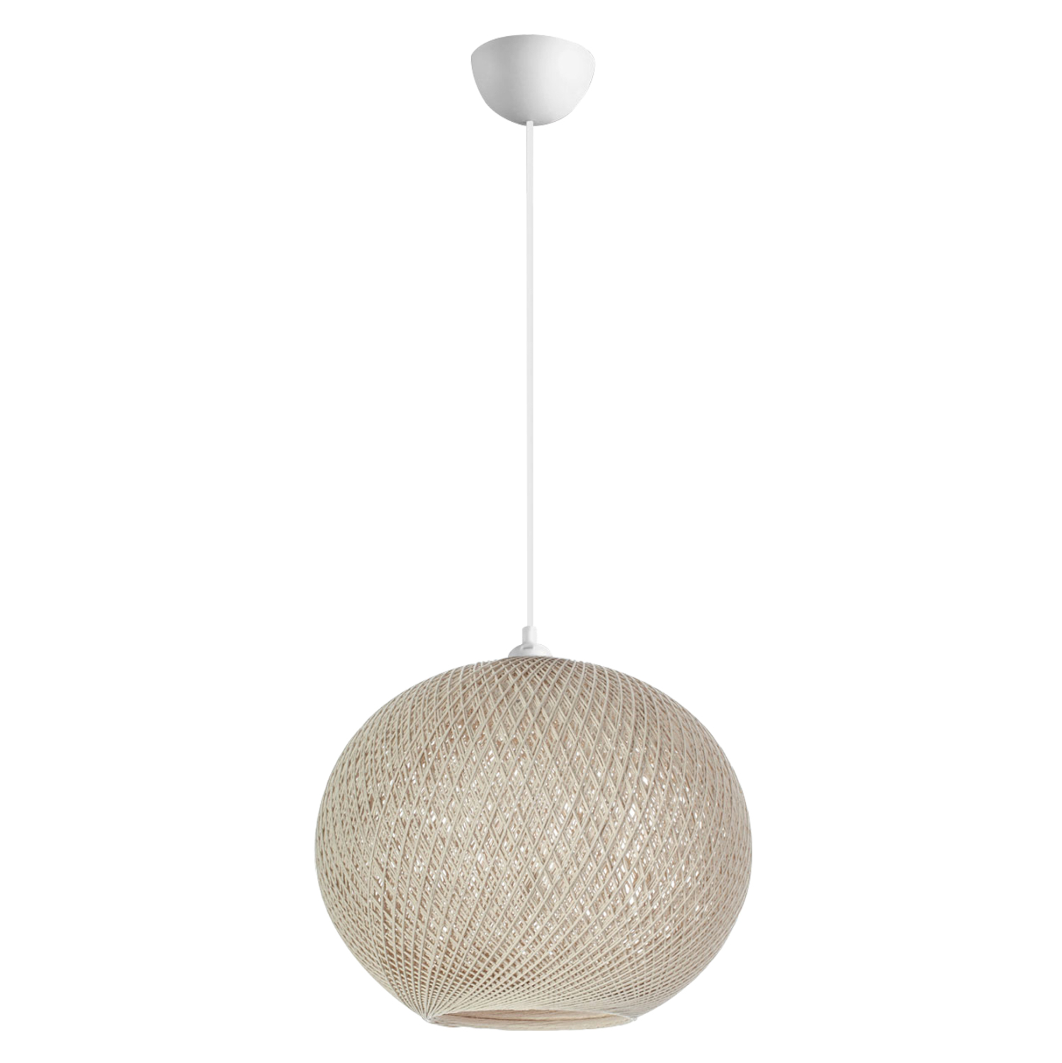 Η αισθητική υπεροχή αυτού του φωτιστικού θα το κάνει να ξεχωρίζει στον χώρο σας. Το ρυθμιζόμενο ύψος του μπορεί να προσφέρει διαφορετικά επίπεδα φωτεινότητας και οπτικής απόλαυσης. Εκτός από διάφορα δωμάτια του σπιτιού σας, μπορεί, επίσης, να ταιριάξει και σε επαγγελματικούς χώρους όπως εστιατόρια, καφέ, ξενοδοχεία κτλ. Το μπεζ χρώμα της σφαίρας σε συνδυασμό με την λευκή κολώνα κρεμάσματος δημιουργεί διχρωμία και αιχμαλωτίζει τα βλέμματα, και μπορεί να αλλάξει άμεσα την διάθεση σας. Το φως διαχέεται εκπληκτικά στον χώρο διαμέσου της πλέξης της σφαίρας και δημιουργεί αμυδρά το σχέδιο της πλέξης στους τοίχους. Ταυτόχρονα μπορεί να συνδυαστεί με πολλά άλλα υλικά και σχέδια για να αναδείξει πλήρως τις αισθητικές αρετές του φωτιστικού, μιας και το σχοινί είναι ιδανικό για τη σύνθεση κομψών χώρων διαβίωσης, με άπειρους συνδυασμούς με ασυνήθιστες πινελιές.
