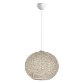 Αν επιθυμείτε να διακοσμήσετε το χώρο σας με ένα φωτιστικό σε boho στυλ, αυτό είναι η πιο σωστή επιλογή. Είναι ένα μονόφωτο φωτιστικό σε σχήμα σφαιρικό και είναι επενδυμένο με λεπτό πλεκτό σκοινί, υψηλής ποιότητας και αντοχής στο χρόνο, σε μπεζ απόχρωση. Tο ύψος του φωτιστικού προσαρμόζεται ανάλογα με τον τρόπο τοποθέτησης, έτσι ώστε να το διαμορφώσετε στο ύψος που σας ικανοποιεί.