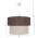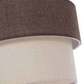 ΠΛΕΟΝΕΚΤΗΜΑΤΑ: Η αισθητική υπεροχή αυτού του φωτιστικού θα το κάνει να ξεχωρίζει στον χώρο σας γιατί έχει μια απλοϊκή αλλά καλλιτεχνική εμφάνιση. Ο ακρυλικός του σκελετός είναι άψογα κατασκευασμένος ενώ το τύμπανο έχει δύο δακτυλίους. Ο εξωτερικός δακτύλιος είναι κατασκευασμένος από ύφασμα σε καφέ χρώμα, ενώ το εσωτερικό από εκρού ύφασμα. Το αποτέλεσμα είναι εξαιρετικά κομψό σε εμφάνιση. Καταφέρνει να συνδυάσει μια ελκυστική μοντέρνα βιομηχανική γοητεία με το ιδανικό μέγεθος, προσθέτοντας έτσι μια όμορφη διακόσμηση στην οροφή σας. Το ρυθμιζόμενο ύψος του μπορεί να προσφέρει διαφορετικά επίπεδα φωτεινότητας και οπτικής απόλαυσης. Εκτός από διάφορα δωμάτια του σπιτιού σας, μπορεί, επίσης, να ταιριάξει και σε επαγγελματικούς χώρους όπως εστιατόρια, καφέ, ξενοδοχεία κτλ. Τα χρώματα του φωτιστικού και το design αιχμαλωτίζει τα βλέμματα, αλλά ταυτόχρονα απαιτεί και ιδιαίτερη διακοσμητική συνοχή για να αναδείξει πλήρως τις αισθητικές αρετές του.