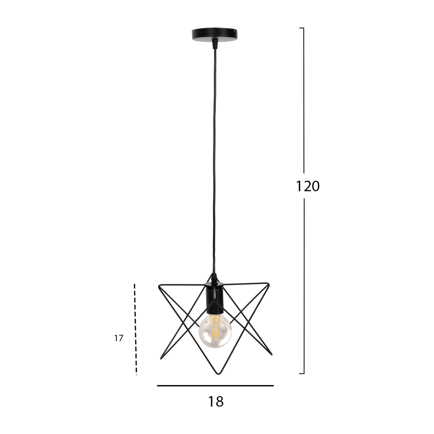 HΜ4075---Γνωρίστε το νέο πρωτότυπο και φινετσάτο μονόφωτο οροφής στην γκάμα μας και ολοκληρώστε την διακόσμησή σας. Το ΜΑΥΡΟ πολυγωνικό «κλουβί» γύρω από την λάμπα που αποτελεί το «καπέλο» του φωτιστικού, δεν εμποδίζει καθόλου το φως να φτάσει σε κάθε γωνιά, και είναι η επιτομή του μοντέρνου design στα φωτιστικά οροφής.