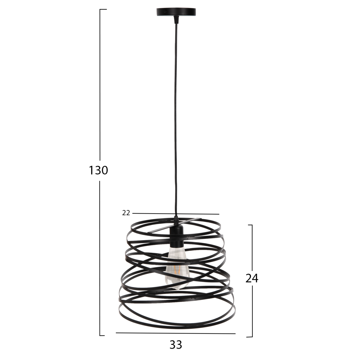Ολόκληρο το φωτιστικό είναι από μέταλλο, όπως και η στρογγυλή βάση κρέμασης στην οροφή.