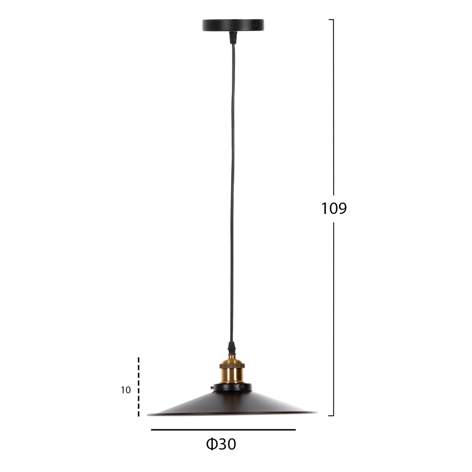 Το HΜ4162 είναι ένα νέο μονόφωτο φωτιστικό που θα ανανεώσει τη διακόσμησή σου. Το κρεμαστό αυτό φωτιστικό έχει μεταλλικό ρηχό καπέλο σε ΜΑΥΡΟ χρώμα με ΧΡΥΣΗ λεπτομέρεια στο επάνω μέρος του καπέλου, ενώ η όλη κατασκευή είναι διαχρονική και καλαίσθητη.