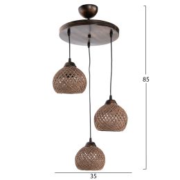 ΦΩΤΙΣΤΙΚΟ ΟΡΟΦΗΣ ΕΣΩΤΕΡΙΚΟΥ ΧΩΡΟΥ ΚΡΕΜΑΣΤΟ HM7359.01 ΑΠΟ ΜΕΤΑΛΛΟ & ΣΧΟΙΝΙ ΣΚΟΥΡΟ ΜΠΕΖ 32x32x80Υ εκ.
