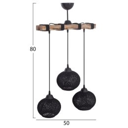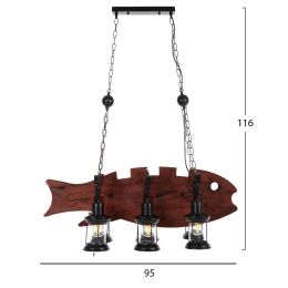 ΦΩΤΙΣΤΙΚΟ ΟΡΟΦΗΣ ΚΡΕΜΑΣΤΟ 6-ΦΩΤΟ HM4118 ΞΥΛΙΝΟ ΨΑΡΙ-ΜΑΥΡΟ ΜΕΤΑΛΛΟ-ΓΥΑΛΙ 95x35x116Υεκ