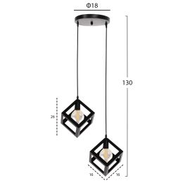 ΦΩΤΙΣΤΙΚΟ ΟΡΟΦΗΣ ΚΡΕΜΑΣΤΟ HM4035 2 ΚΥΒΟΙ ΜΑΥΡΟ ΜΕΤΑΛΛΟ Φ18x130Yεκ.