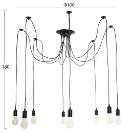 ΦΩΤΙΣΤΙΚΟ ΟΡΟΦΗΣ ΚΡΕΜΑΣΤΟ 8-ΦΩΤΟ HM4176 ΜΑΥΡΟ ΜΕΤΑΛΛΙΚΟ-ΜΑΥΡΑ ΚΑΛΩΔΙΑ Φ100x180Υ