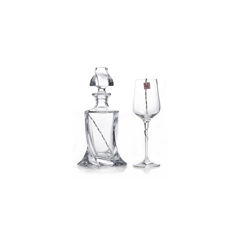 Σετ καράφα- ποτήρι γυάλινα στολισμένα με ασημί γκλίτερ μέταλλο. Παράδοση σε 5-10 εργάσιμες μέρες.