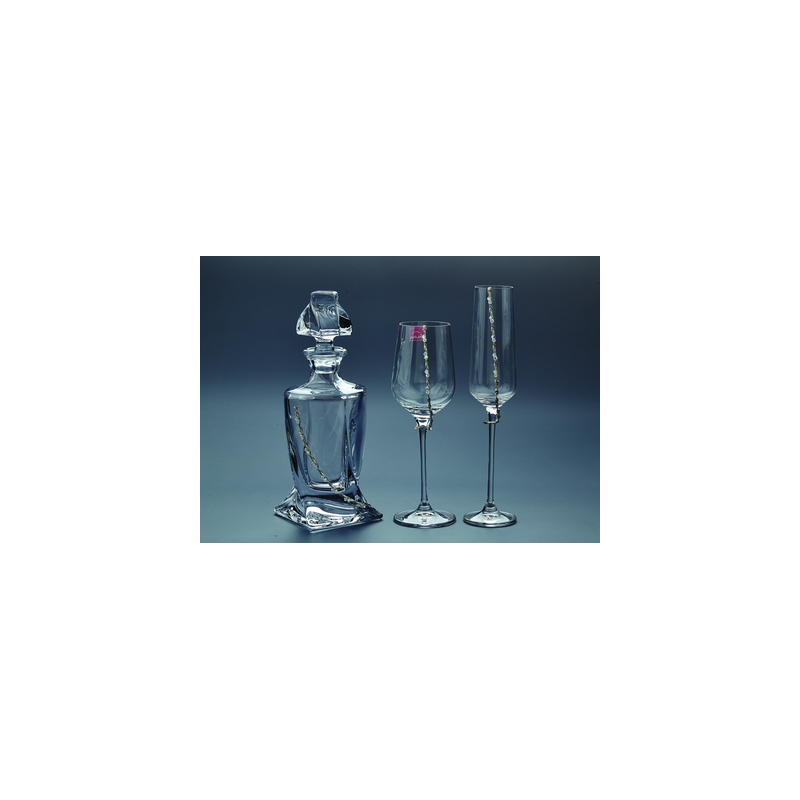 Σετ καράφα- ποτήρι γυάλινα στολισμένα με ασημί γκλίτερ μέταλλο με κολλημένα στρας. Παράδοση σε 5-10 εργάσιμες μέρες.