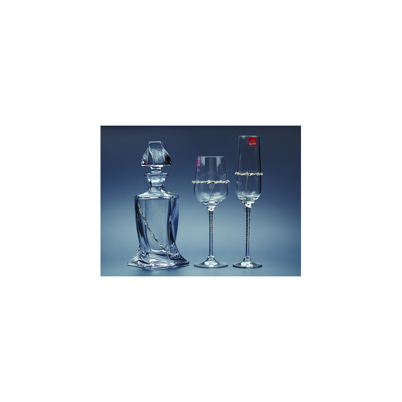 Σετ καράφα- ποτήρι γυάλινα στολισμένα με ασημί γκλίτερ μέταλλο και χάντρες. Παράδοση σε 5-10 εργάσιμες μέρες.
