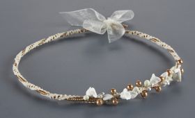 Στέφανα γάμου με ροζ χρυσή κλωστή και διακοσμητικά και λευκά λουλούδια. Παράδοση σε 3-10 εργάσιμες μέρες.