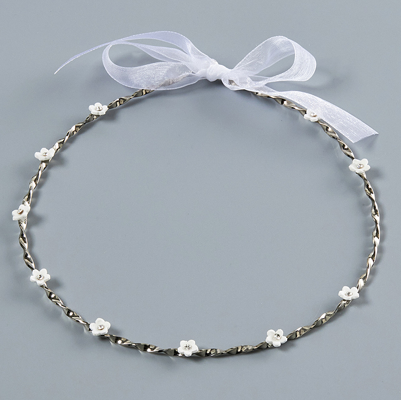 Στέφανα γάμου πλεξούδα ασημί με λευκά άνθη. Παράδοση σε 3-10 εργάσιμες μέρες.